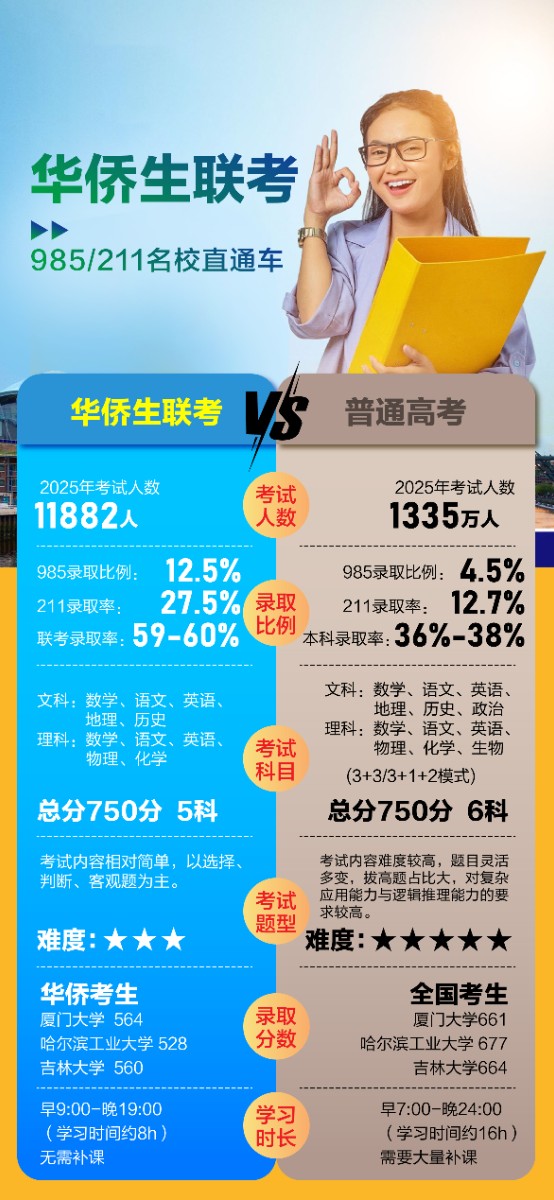 华侨生联考𝑽𝑺普通高考一张图看懂升学对比
